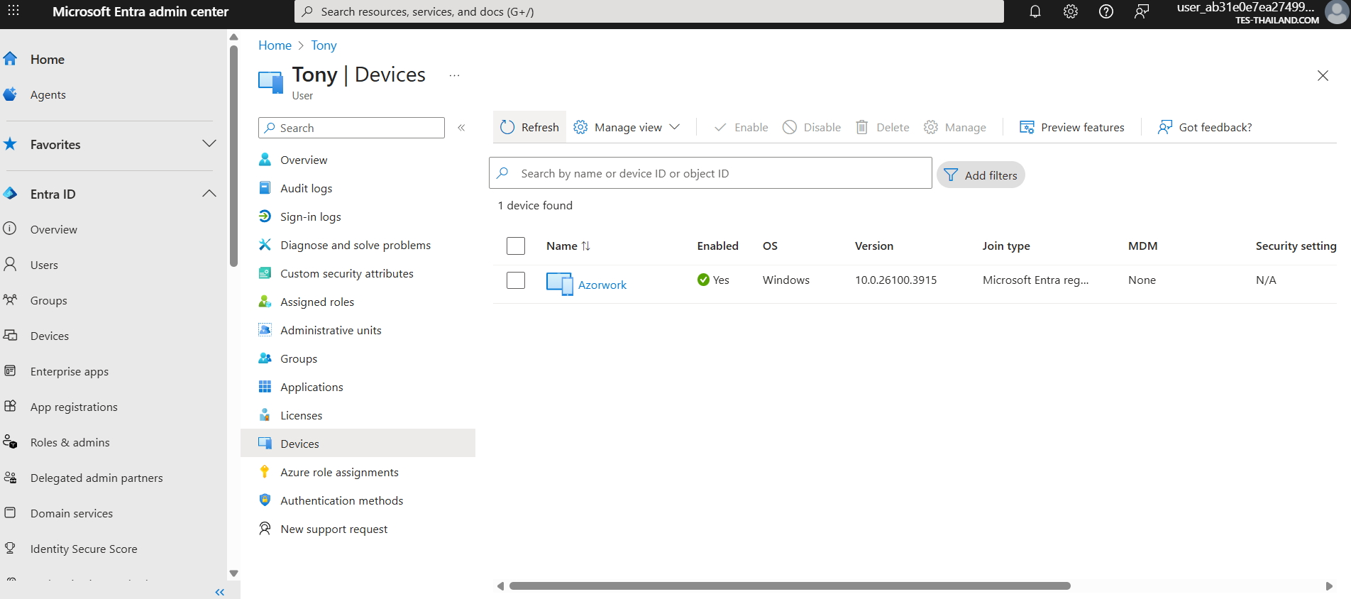 - ไปที่ User ที่ติดปัญหาการใช้งาน > ไปที่ Device